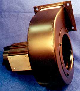Radial centrifugal blowerThis radial blade centrifugal blower/ motor assembly uses a radial blade design to provide a high pressure to volume ratio and is particularly suitable for applications where compactness and light weight are critical. These blowers are typically designed for extreme humidity, vibration, and shock for extended life and altitude condition. |